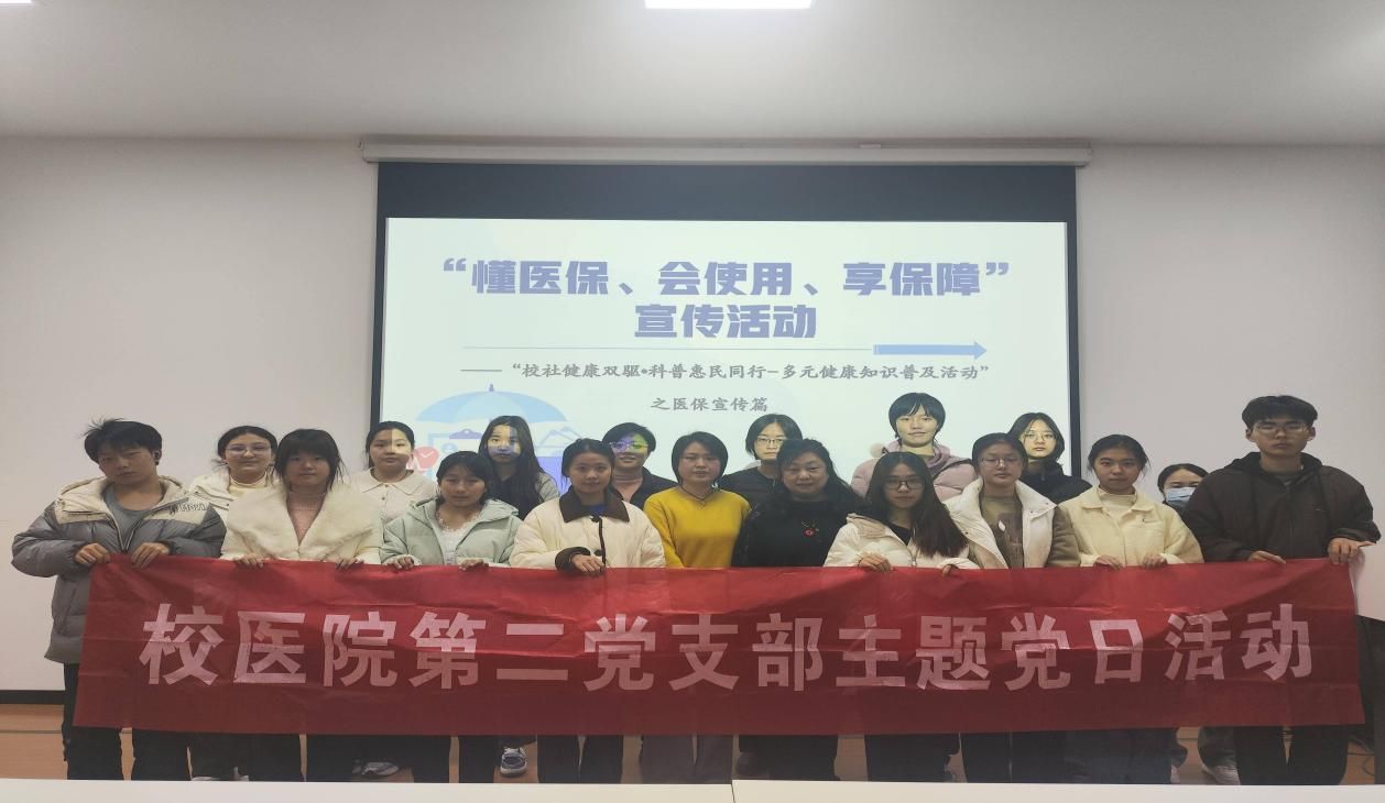 11月19日下午,校医院第二党支部联合西安市医疗保障经办服务中心、西安市税务局第二税务分局,成功举办“懂医保、会使用、享保障”主题党日活动,拉开校医院“校社健康双驱•科普惠民同行—多元健康知识普及活动”系列现场活动帷幕。为广大学生送上干货满满的医保政策“大礼包”。